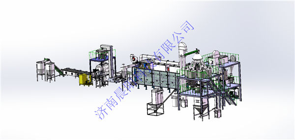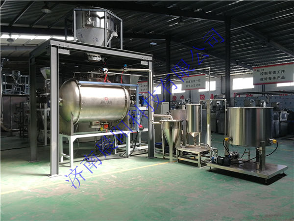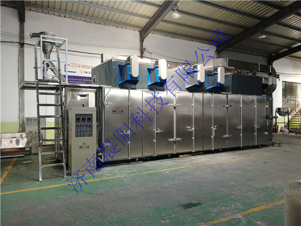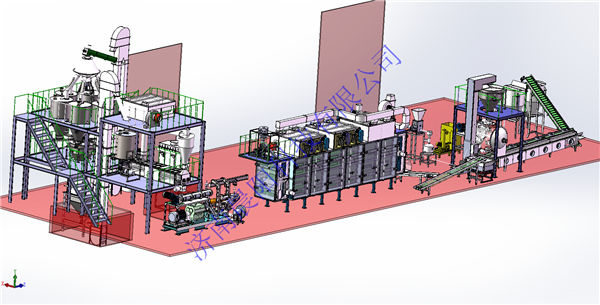 濟南晨陽科技有限公司于2019年5月份與韓國客戶簽訂時產1噸高肉狗糧生產線,該生產使用全自動(粉狀料)配料系統(tǒng),高肉熟化均質機,雙螺桿膨化機,燃氣間接加熱式烘干機,全自動真空噴涂系統(tǒng)。其中先肉添加比例高達50%,填補了國內技術空白,該生產于8月底加工結束。