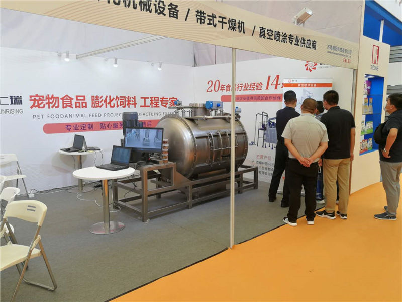 濟(jì)南晨陽(yáng)公司作為寵物食品設(shè)備供應(yīng)商,以連續(xù)數(shù)界參加亞寵展覽會(huì),本次展覽會(huì)我們展示新開發(fā)的真空噴涂設(shè)備,本噴涂設(shè)備主要應(yīng)用于時(shí)產(chǎn)2.5噸以高能寵物糧生產(chǎn)線的高油脂產(chǎn)品加工,填補(bǔ)了國(guó)內(nèi)無(wú)小型自動(dòng)真空噴涂設(shè)備的空白,該產(chǎn)品一經(jīng)亮相,在展會(huì)就有大批客戶不斷咨詢?cè)摦a(chǎn)品的技術(shù)問(wèn)題。