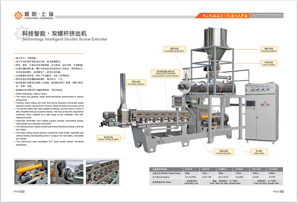 分段式組合螺桿,適用原料廣。具有自潔功能。