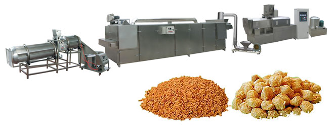 (3)拆絲:將脫水后的拉絲蛋白打散拆絲。把復(fù)水脫水后的拉絲蛋白置于快速打漿機(jī)中(鈍刀,轉(zhuǎn)速約500~1000rpm),打漿約2~3分鐘即可。也可用轉(zhuǎn)速達(dá)300rpm以上的擂潰機(jī)、攪拌機(jī)拆絲?;蛘邔匕铏C(jī)反轉(zhuǎn)(刀背)運(yùn)行1分鐘左右(切刀速度約500~1000rpm)。 拉絲蛋白產(chǎn)品具有極佳的結(jié)構(gòu)和真實(shí)肉質(zhì)纖維的組織,非常適合用于各類高級(jí)素食仿肉食品的加工,如素火腿、素雞、素魚、素漢堡、素?zé)峁?、素茶鵝、素牛排、素肉松等。產(chǎn)品本身亦具有良好的吸水性、保油性,經(jīng)過適當(dāng)?shù)募庸ぜ夹g(shù)后,是一種理想的高蛋白肉制品添加物,在肉制品應(yīng)用中,可達(dá)到增強(qiáng)肉感,降低成本,提高產(chǎn)品中的蛋白質(zhì)含量的目的。如應(yīng)用于肉糜腸類、西式火腿、肉丸類、重組排類(雞排、豬排等)、油炸雞塊、漢堡肉類餃子、包子、肉粽等速凍肉制品中;用于諸如仿肉牛肉干,重組牛肉粒,葷素肉松等休閑食品也是絕佳的選擇。拉絲蛋白產(chǎn)品復(fù)水即可調(diào)理制作菜肴或代替部分肉品使用,因此可直接供食堂、配餐公司、餐廳等選購(gòu)。本品不僅操作方便,也倡導(dǎo)了健康營(yíng)養(yǎng)的飲食新概念,同時(shí)可達(dá)到降低成本的效果(不到瘦肉成本的1/2),為一新潮流趨勢(shì)的食材選擇。
