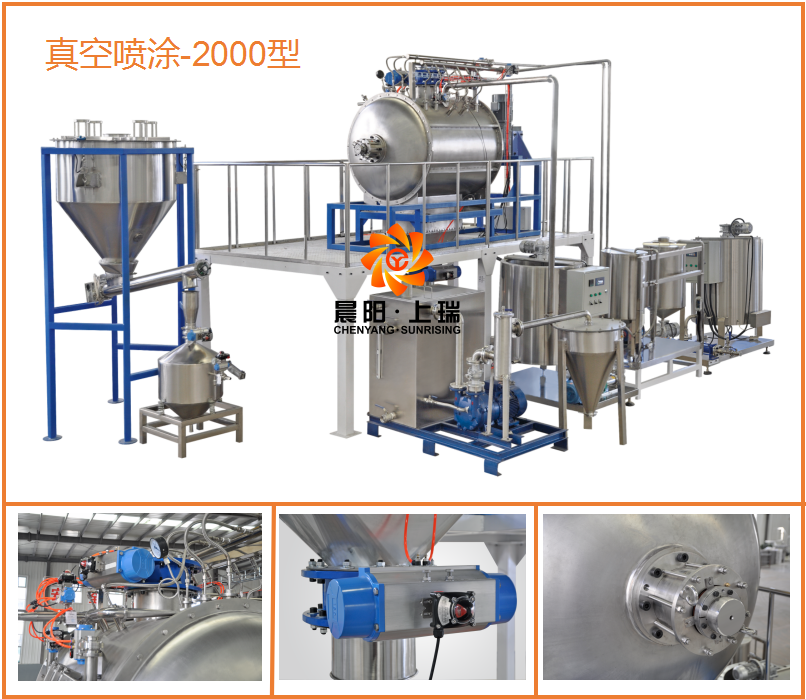 真空噴涂使用晨陽自行研發(fā)的第三代真空噴涂機,該真空噴涂系統(tǒng)目前使用臥式單軸漿葉混合機,該機比較適合2噸生產(chǎn)線的產(chǎn)品配置使用,具有高性價比的使用效果。密封閥門使用進口配置,機械密封使用合資配置,減速機使用硬齒面減速機,食品接觸完全304材質(zhì)。真空狀態(tài)下噴涂油脂含量可以到30%,真空壓力達0.095mpa,動態(tài)狀態(tài)下保壓0.09mpa堅持10分鐘在以上。配置水冷真空泵。油脂,風味劑都是在真空狀態(tài)下完成,油脂獨立稱重系統(tǒng),膏狀風味劑,獨立稱重系統(tǒng),不同液態(tài)使用不同的輸送泵,晨陽公司自行編輯的運行軟件在第三代真空噴涂已經(jīng)實現(xiàn)完全自動化,穩(wěn)定化,參數(shù)可視化,重要部位數(shù)據(jù)監(jiān)視報警,數(shù)據(jù)存儲,配方留檔等強大功能。