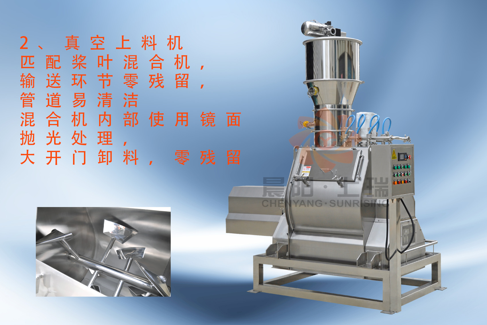 生產(chǎn)線主要設(shè)備:無塵投料站,槳葉式混合機(jī)、暫存?zhèn)}、雙螺桿膨化機(jī)、負(fù)壓輸送-干燥冷卻一體機(jī)、除塵式粉碎機(jī)、篩選機(jī)、成品倉。
