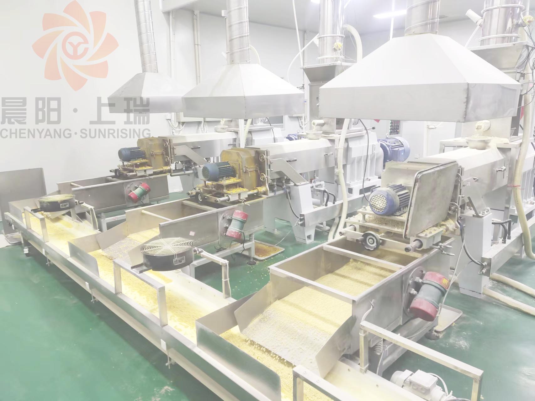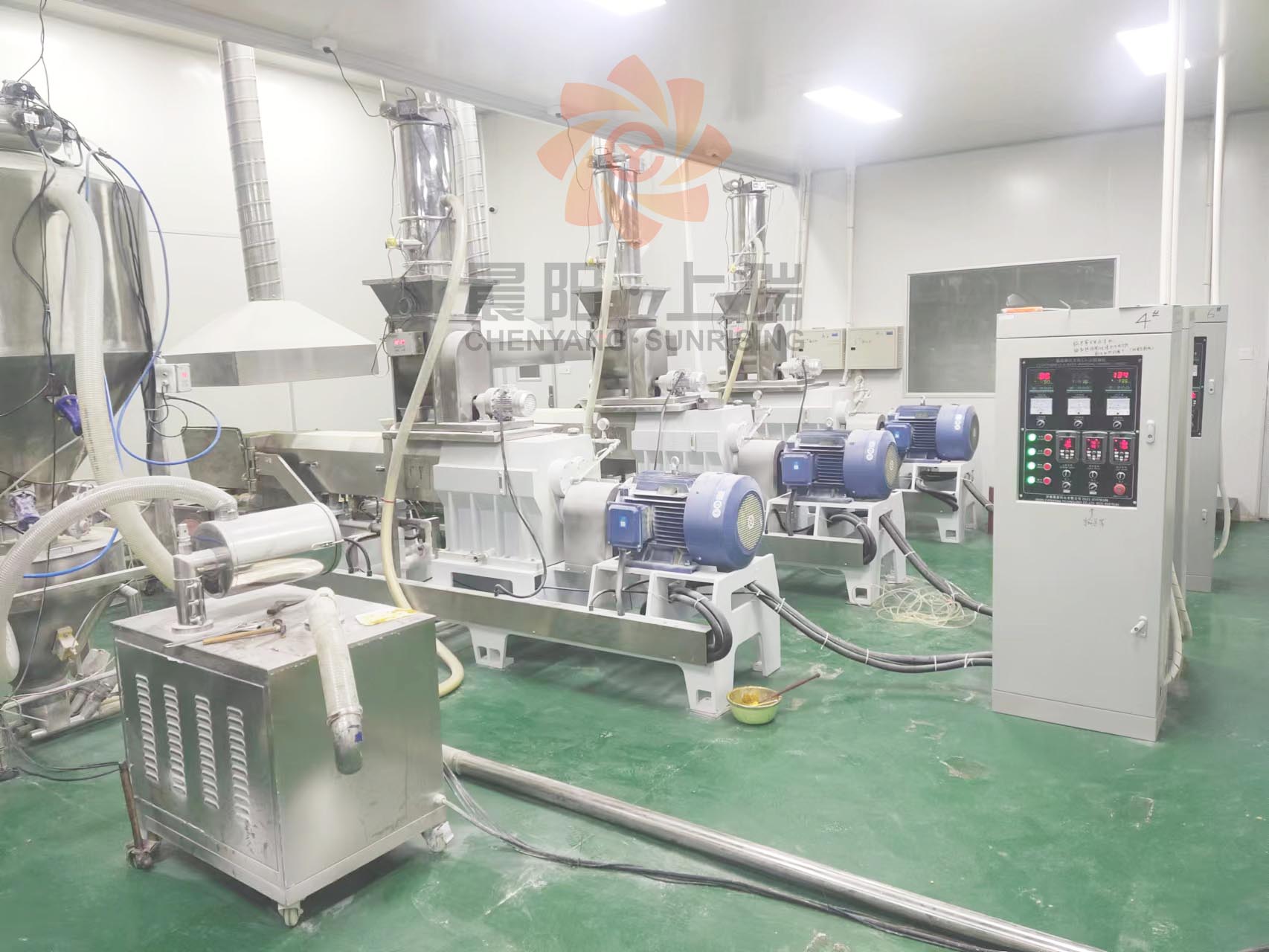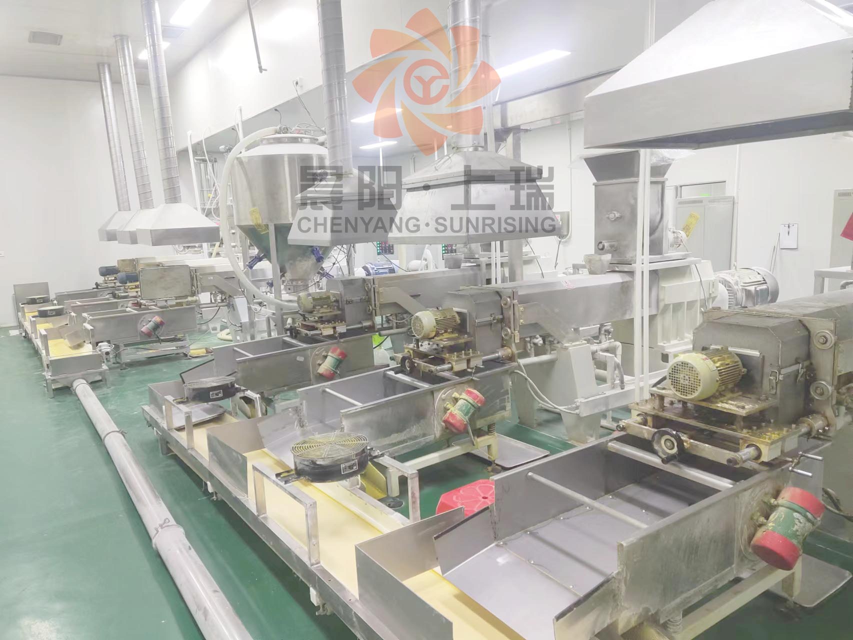 客戶因早餐營養(yǎng)粉(沖調(diào)類營養(yǎng)粉)市場需求不斷增加,產(chǎn)能需求日益旺盛增加,與晨陽分多次訂購營養(yǎng)粉加工膨化設(shè)備,為保證產(chǎn)品的高質(zhì)量生產(chǎn),客戶生產(chǎn)車間使用無塵凈化車間。采用濟(jì)南晨陽自主研發(fā)的新型62雙螺桿膨化機(jī),本型號的機(jī)器單機(jī)產(chǎn)能300公斤每小時,本機(jī)型運(yùn)行穩(wěn)定,產(chǎn)品質(zhì)量在同行業(yè)排在前端,客戶用該機(jī)型24小時不間斷連續(xù)運(yùn)行,單機(jī)日產(chǎn)能7.2噸。該機(jī)型在客戶工廠經(jīng)住考驗(yàn),得到客戶的充分肯定。在日產(chǎn)7噸的產(chǎn)能下已經(jīng)復(fù)制6臺機(jī)器,擴(kuò)產(chǎn)到日產(chǎn)能到45噸,產(chǎn)能和質(zhì)量的穩(wěn)定在同行業(yè)已經(jīng)達(dá)到頂端??蛻舾鶕?jù)市場需求,已經(jīng)在研產(chǎn)新的生產(chǎn)線,規(guī)劃未來,未雨綢繆!感謝客戶的信任,我們將一如既往的用熱情的服務(wù)和更高的質(zhì)量回饋客戶嗎,合作共贏,同謀發(fā)展!