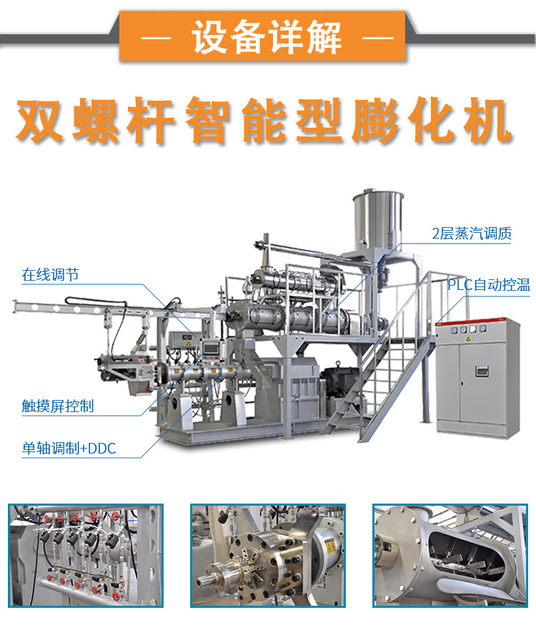 3. 膨化處理:經(jīng)過破碎與烘干的原料會被送入膨化機中,通過高溫高壓的處理,使原料膨化。這一步可以增加飼料的體積,提高其在水中的穩(wěn)定性和適口性。