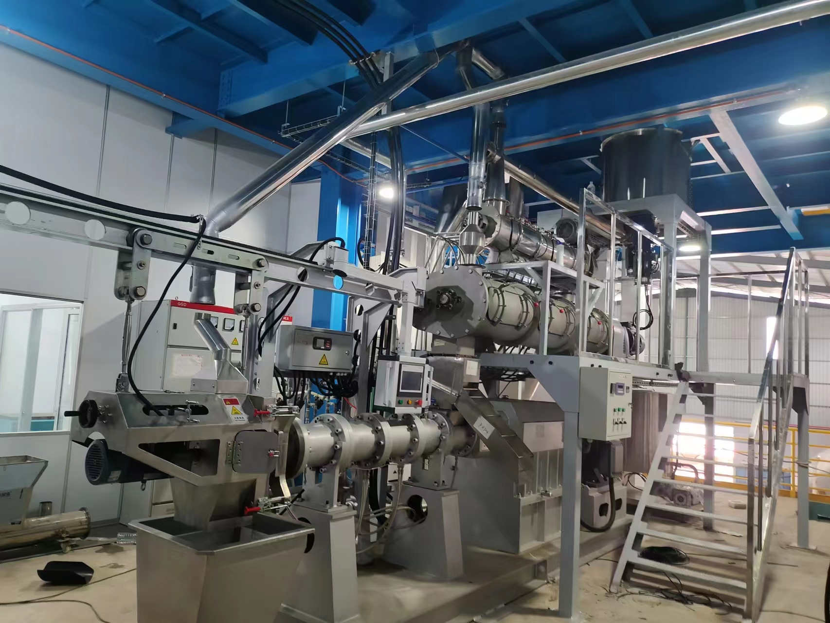 雙螺桿擠壓膨化機(jī):在高溫高壓環(huán)境下膨化原料。