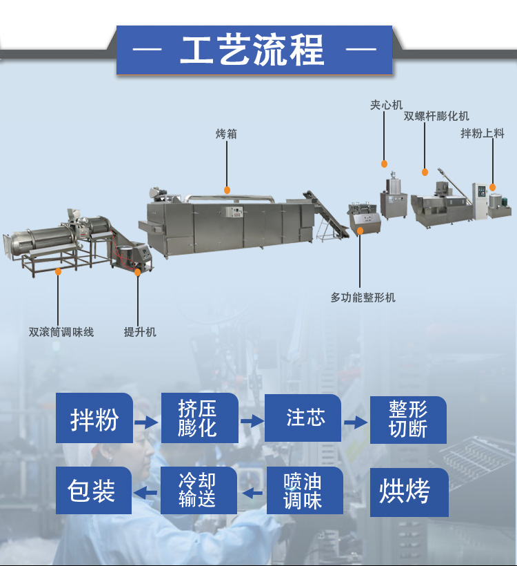 膨化食品生產(chǎn)線的工藝流程主要包括以下幾個(gè)步驟: