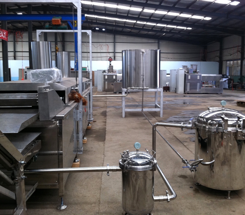 油炸機(jī)組成:隧道式油炸機(jī)、粗濾機(jī)、精濾機(jī)、循環(huán)油泵、儲(chǔ)油罐2臺(tái)、外置加熱器(燃油、燃?xì)庑团渲茫⒖刂撇糠纸M成。