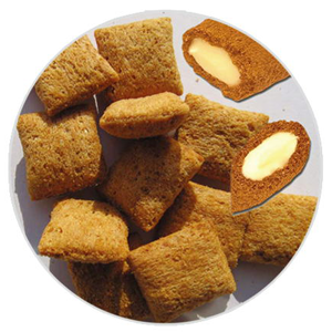 產(chǎn)品簡(jiǎn)介:擠壓膨化小食品生產(chǎn)線采用雙螺桿擠壓技術(shù)將不同谷物的原料經(jīng)混合后在膨化機(jī)內(nèi)受高溫高壓,在磨具擠出后瞬間失壓,形成多孔,松軟的膨化食品,變換磨具即可生產(chǎn)多種形狀產(chǎn)品,擠壓膨化食品生產(chǎn)線可以生產(chǎn)芝士球,玉米酥,麥香雞塊等產(chǎn)品,增加設(shè)備配置可以生產(chǎn)夾心米果,米餅等夾心型膨化食品。