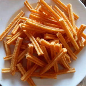 油炸膨化小食品生產(chǎn)線可以生產(chǎn)鍋巴、薯條、薯片、尖角脆、比薩卷等產(chǎn)品。通過變換膨化機的磨具和成型切斷機即可生產(chǎn)多種形狀的產(chǎn)品,較為復雜的三維立體妙脆角、小魚、等產(chǎn)品需配合整形切斷設備,通過更換滾刀性狀可以實現(xiàn)加工不同形狀的產(chǎn)品