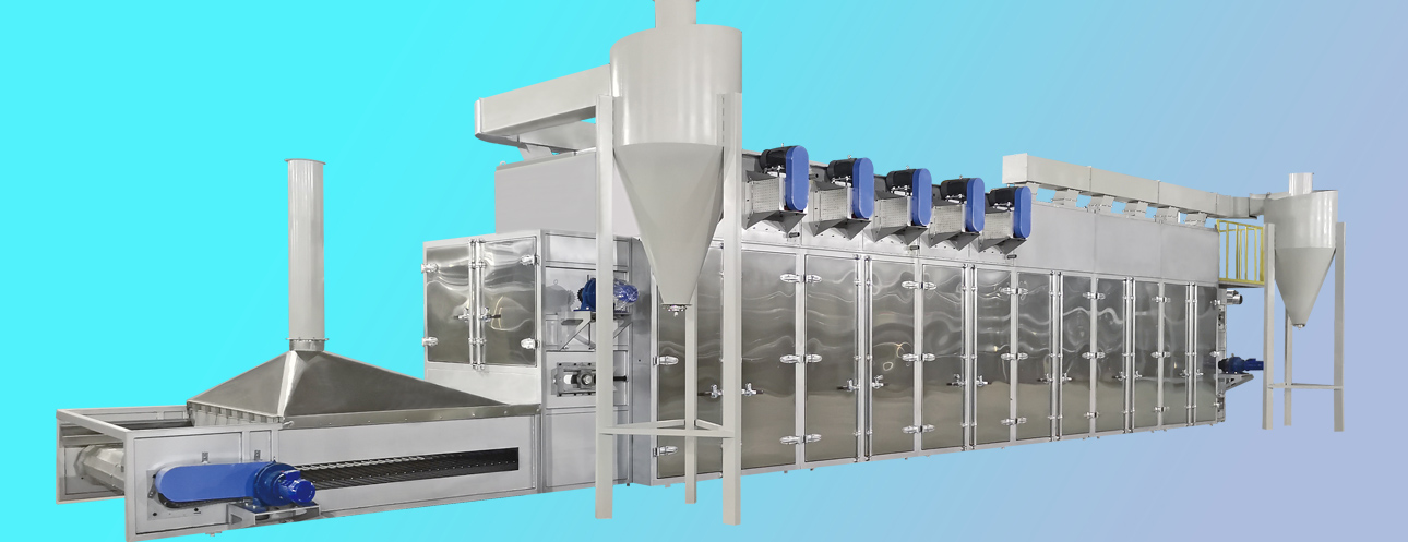 5、每2米為一個獨立干燥段,干燥段風壓和風速獨立循環(huán)控制,適用不同產(chǎn)量和不同產(chǎn)品的烘干。