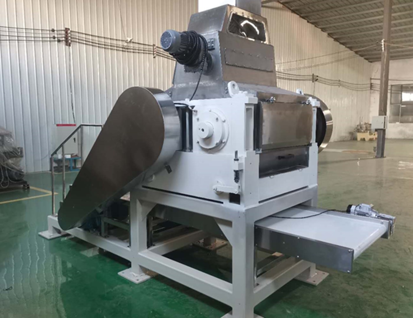 出料口:pvc輸送帶把壓好的片輸送到機(jī)器外側(cè),可有效避免風(fēng)送機(jī)送料堵料的情況。